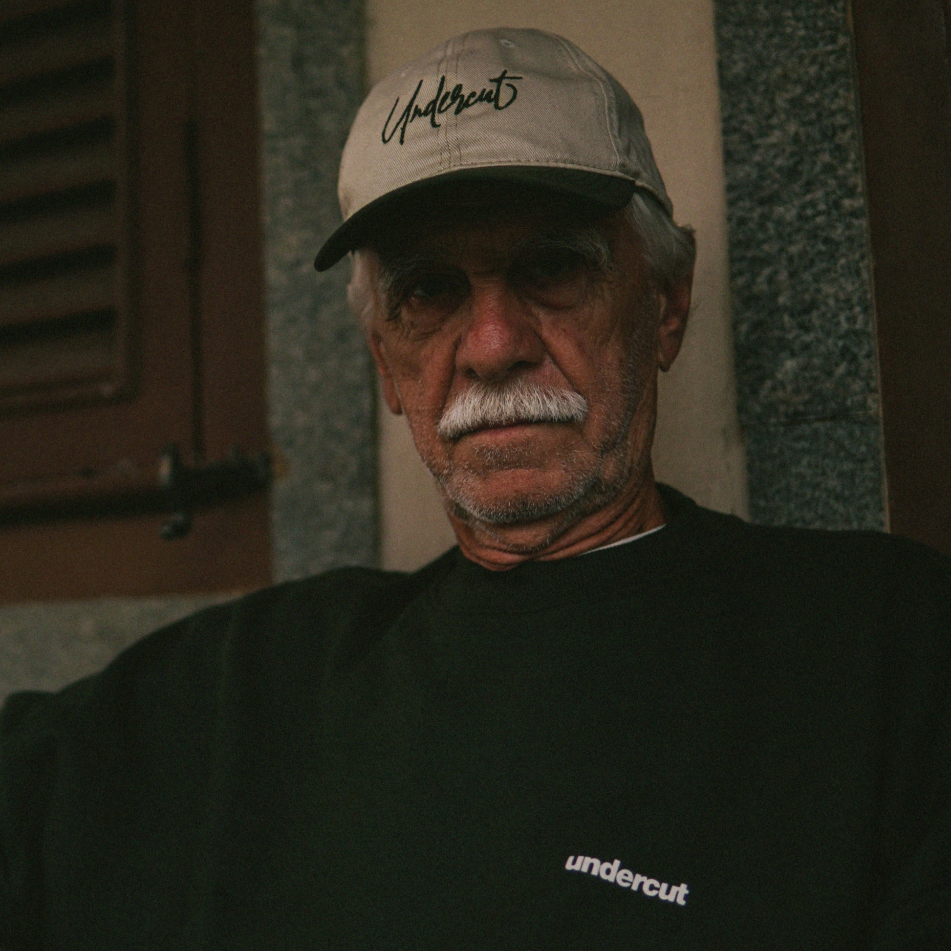 Dad hat com corpo em bege e aba em verde escuro feito em sarja. Logo script bordado com o slogan WIP bordado no verso. Ajuste com fivela cromada.