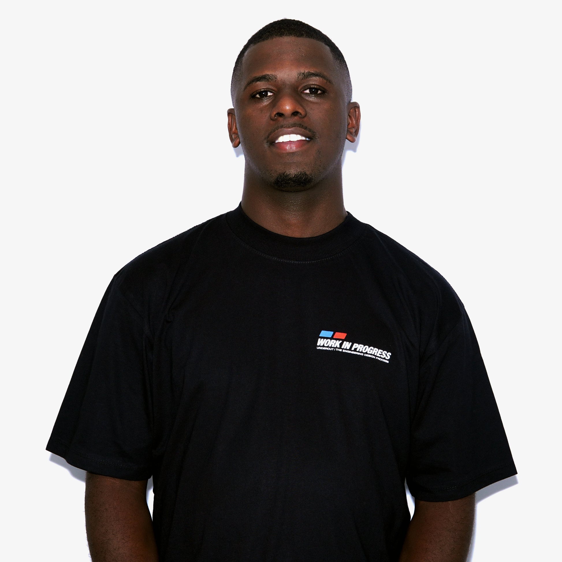 A camiseta possui modelagem highline, com um corte padrão e gola de 3,5 cm. Feita de malha 100% algodão premium de peso médio de 175 GSM na cor preta. Possui estampa serigrafada na frente e nas costas.